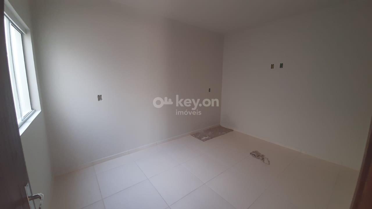 Casa contendo 2 quartos, sala, cozinha, banheiro e área externa com garagem.