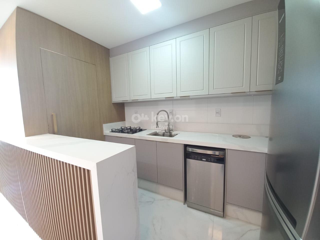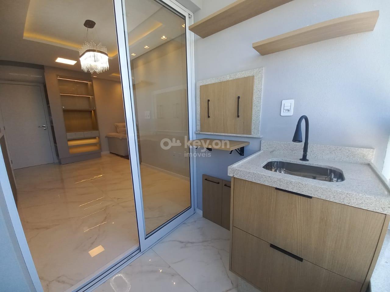 Contendo dois quartos com armários, banheiro social, sala, cozinha com armários, área de serviço, sacada com churrasqueira e vaga de garagem.