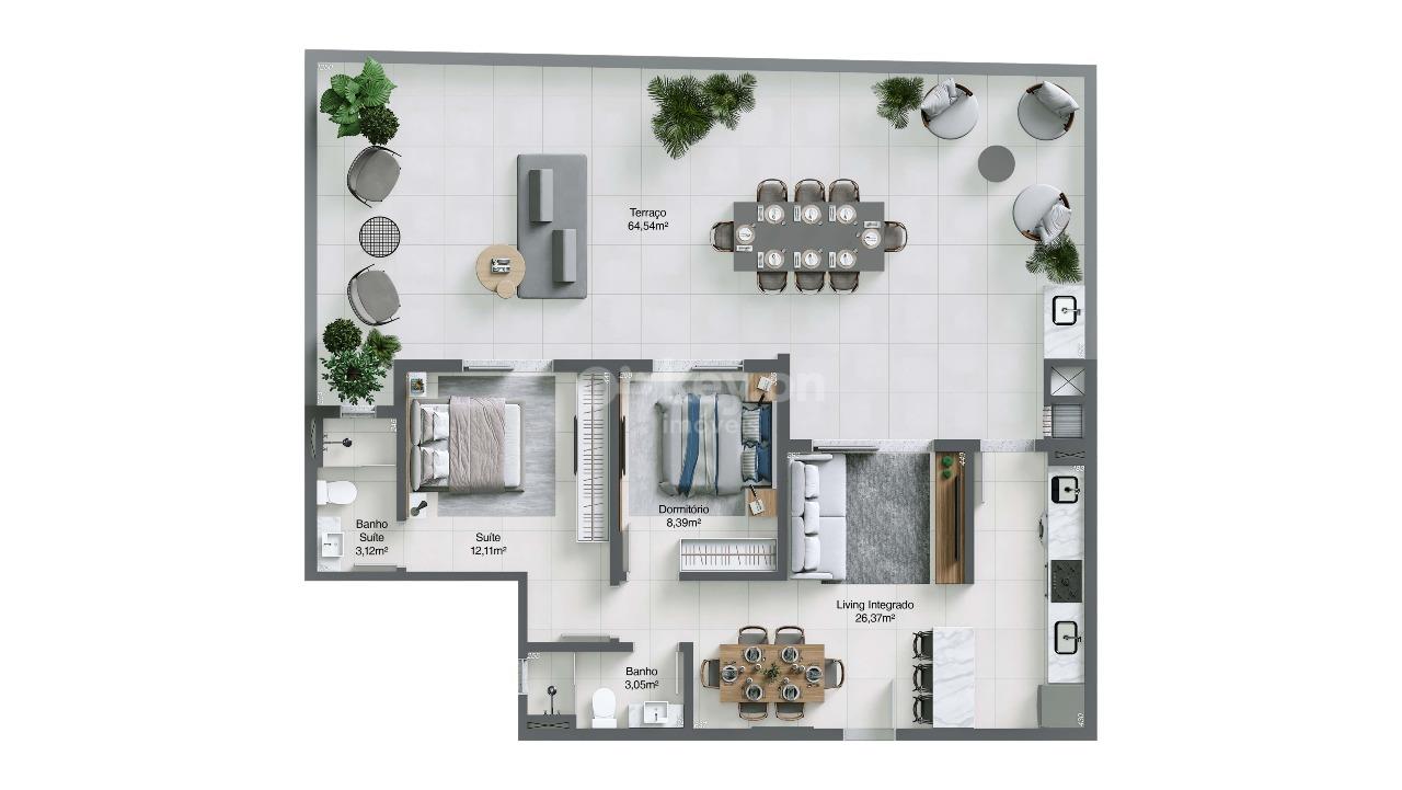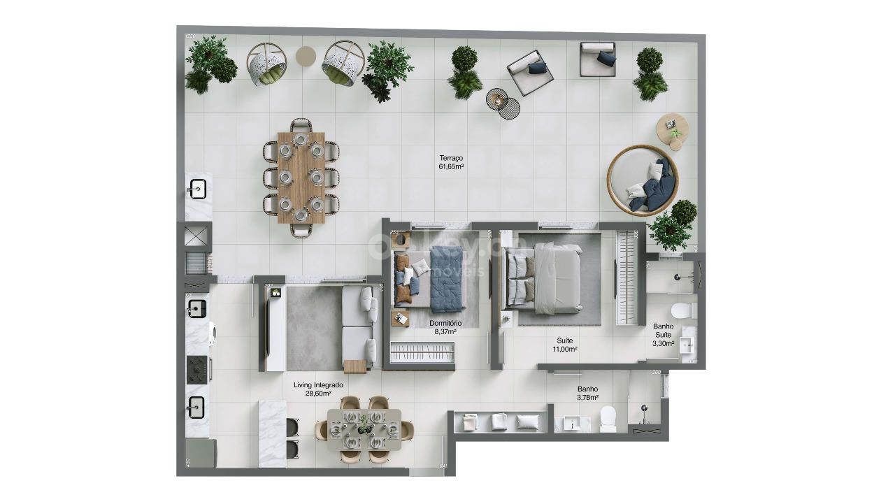 Apartamento Garden: 2 dormitórios, sendo 1 suíte, com áreas privativas de 134m², 136m² ou 161m².