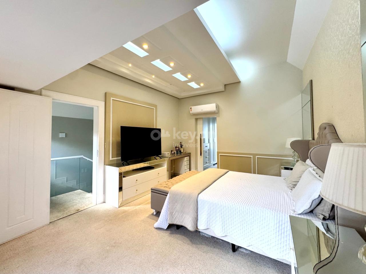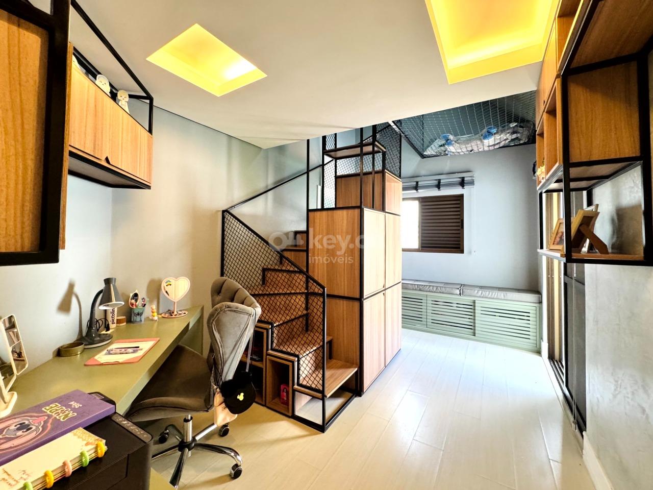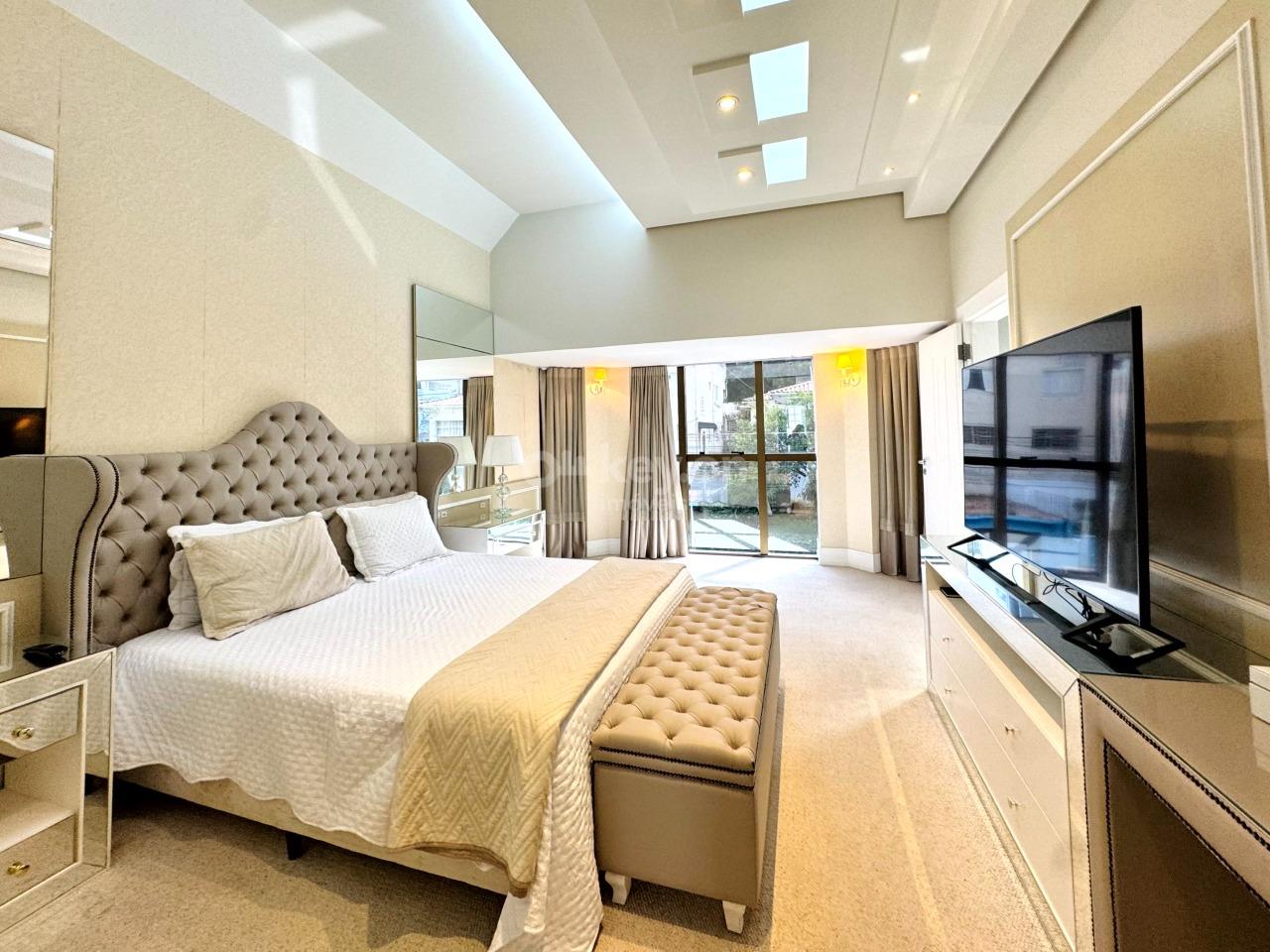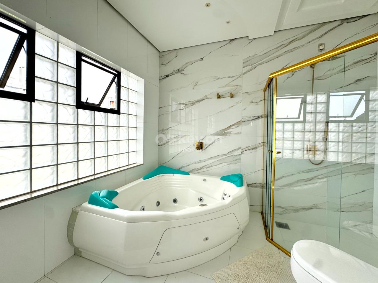 A suíte master, no último andar, oferece closet, hidromassagem e banheiro com duas cubas — um verdadeiro refúgio particular.