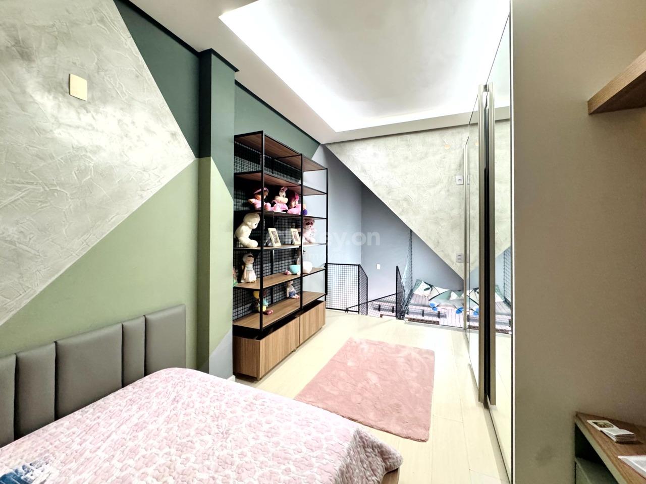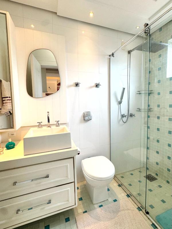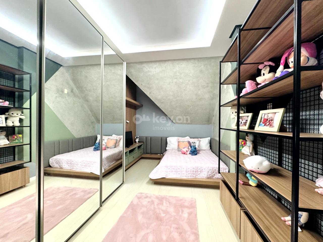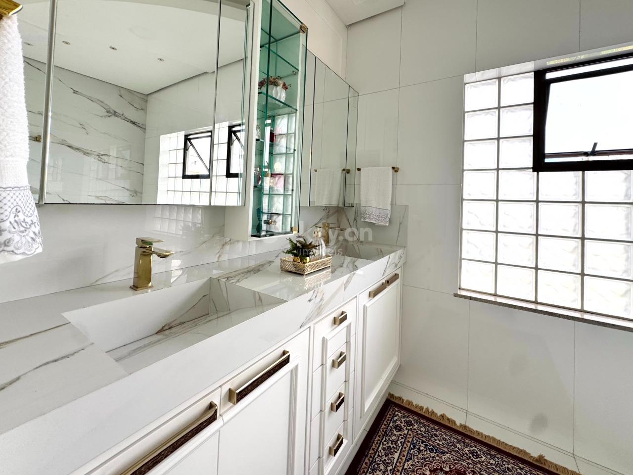 A suíte master, no último andar, oferece closet, hidromassagem e banheiro com duas cubas — um verdadeiro refúgio particular.