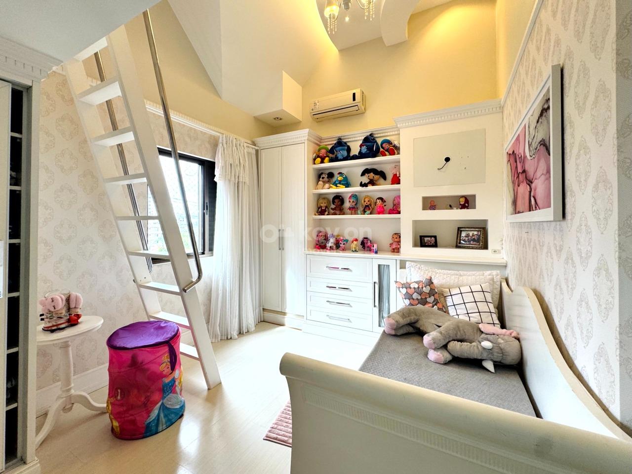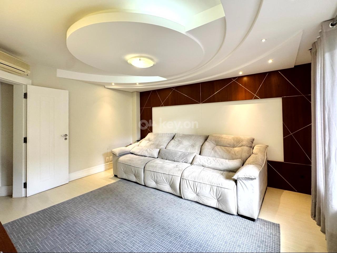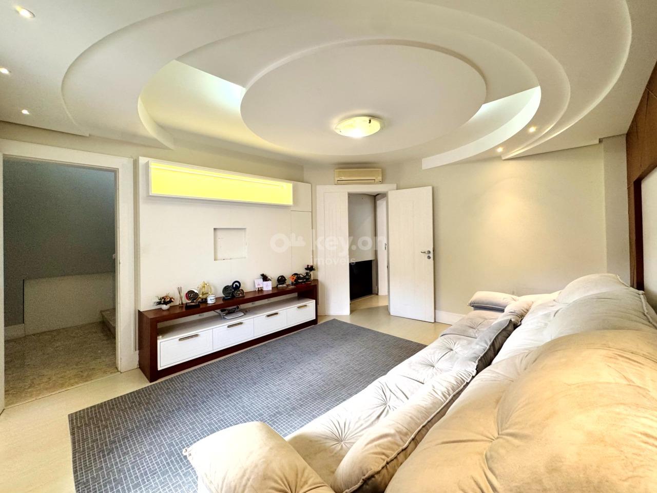 São 4 suítes, sendo duas com mezanino, além de um quarto independente em formato de “apartamento” privativo com suíte e sala de TV.